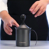 先將蒸汽噴嘴打開一次,去除噴嘴內的殘留水汽,在將蒸汽噴嘴深深插入牛奶裡,注意牛奶不可太滿,會溢出,待蒸汽噴出時,緩緩將噴嘴上移到牛奶中的較淺位置,增加與空氣的接觸。