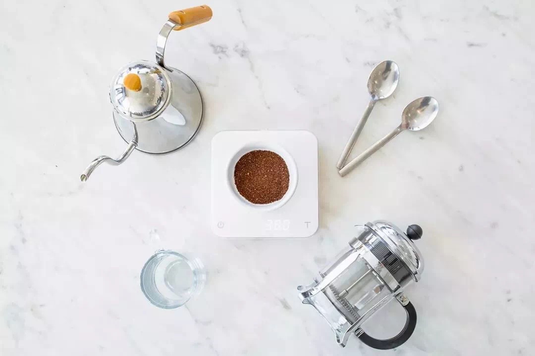 在法壓壺中,萃取過程中的一部分咖啡粉會沉澱在玻璃容器的底部,讓水無法與所有的咖啡粉進行直接接觸,導致口感的不協調。為了彌補這一點,請將咖啡粉研磨得比通常推薦的法壓壺的研磨刻度稍細一些,比普通手沖咖啡的刻度更粗一些。如果是購買咖啡粉的話,可以要求烘焙商或者咖啡師幫你研磨到杯測用的刻度。