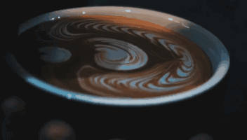 但當流速較小時,粗厚的流線很難進行自由晃動,這時只能在咖啡表面留下一條條看不出圖案的粗線。