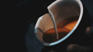 一隻手握咖啡杯,杯口微微向裡傾斜,另一隻手端住奶缸,進行融合時奶缸高度要超過咖啡杯大約10cm,大概奶流和咖啡液面保持30度角的傾斜度