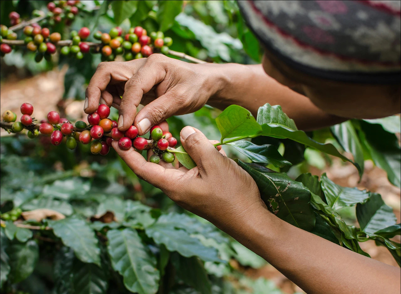 通過人力,在咖啡園內來回穿梭,採集每一個咖啡樹上已成熟的果實,雖然這樣的摘採方式較為緩慢又昂貴,但就能夠確保咖啡採收的品質。