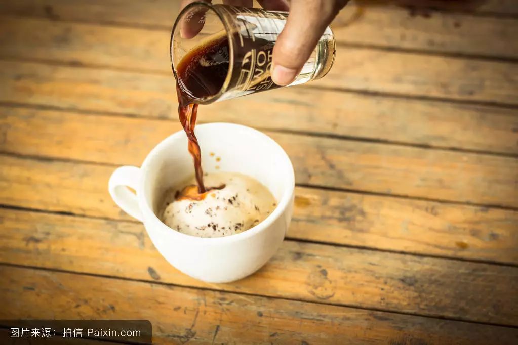 4.在冰淇淋上方放一塊巧克力,熱咖啡沖下去的時候,巧克力也會跟著融化。