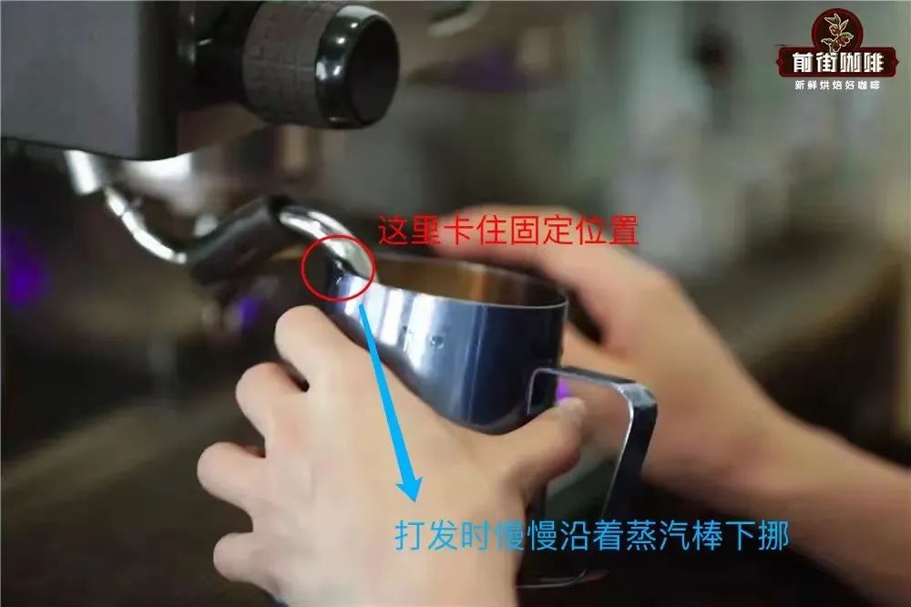 我們可以找到奶缸和蒸汽棒的一個支點,利用這個支點固定住奶缸,這樣在打發的時候就不需要依靠自身的力量來對奶缸進行穩固,自然就不會因為手抖而出現誤發泡的現象。