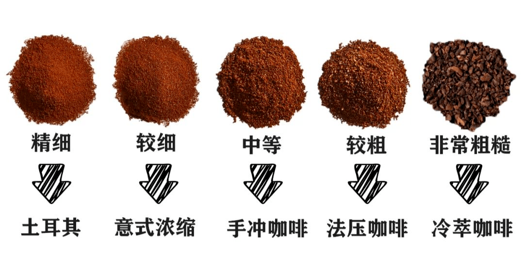 不同的沖煮方式需要不同的咖啡粉粗細研磨度 |