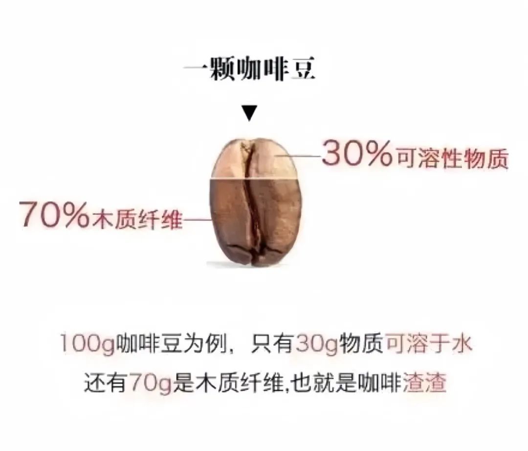 在上個世紀50年代,美國國家咖啡協會特別聘請了麻省理工化學博士–洛克哈特先生對咖啡進行科學研究工作。接著洛克哈特博士研究出,一顆咖啡豆裡的可溶物佔自身重量的30%,剩餘的70%則是不可溶解的木質纖維。