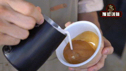 在融合的過程中,我們盡量不要使用大流量注入奶泡,這很容易導致奶泡沖底進而反白(即出現在咖啡液底下的白色)。因為此時杯中的咖啡液量不多,奶泡可以很輕易的就觸碰到底部,進而反彈「污染」液面。所以在融合時,我們盡量控制一下流量~