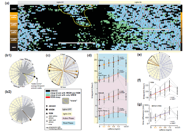 然而在咖啡因幹預下,小鼠的REM睡眠被迫延後至休息期尾聲。這意味著,當上班族被鬧鈴吵醒時,大腦可能正處於深度修復的關鍵視窗。這種「睡眠時差」具有累積效應在連續一周攝取相當於人類5杯咖啡的劑量後,小鼠的入睡時間延遲近兩小時。